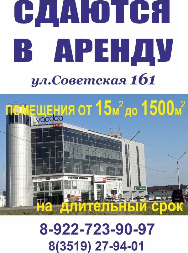 Предлагаем в аренду офисы и коммерческие помещения площадью от 15 до 1500 кв.м. в деловом комплексе по адресу Магнитогорск, ул. Советская, 161 на длительный срок, с заключением договора аренды.